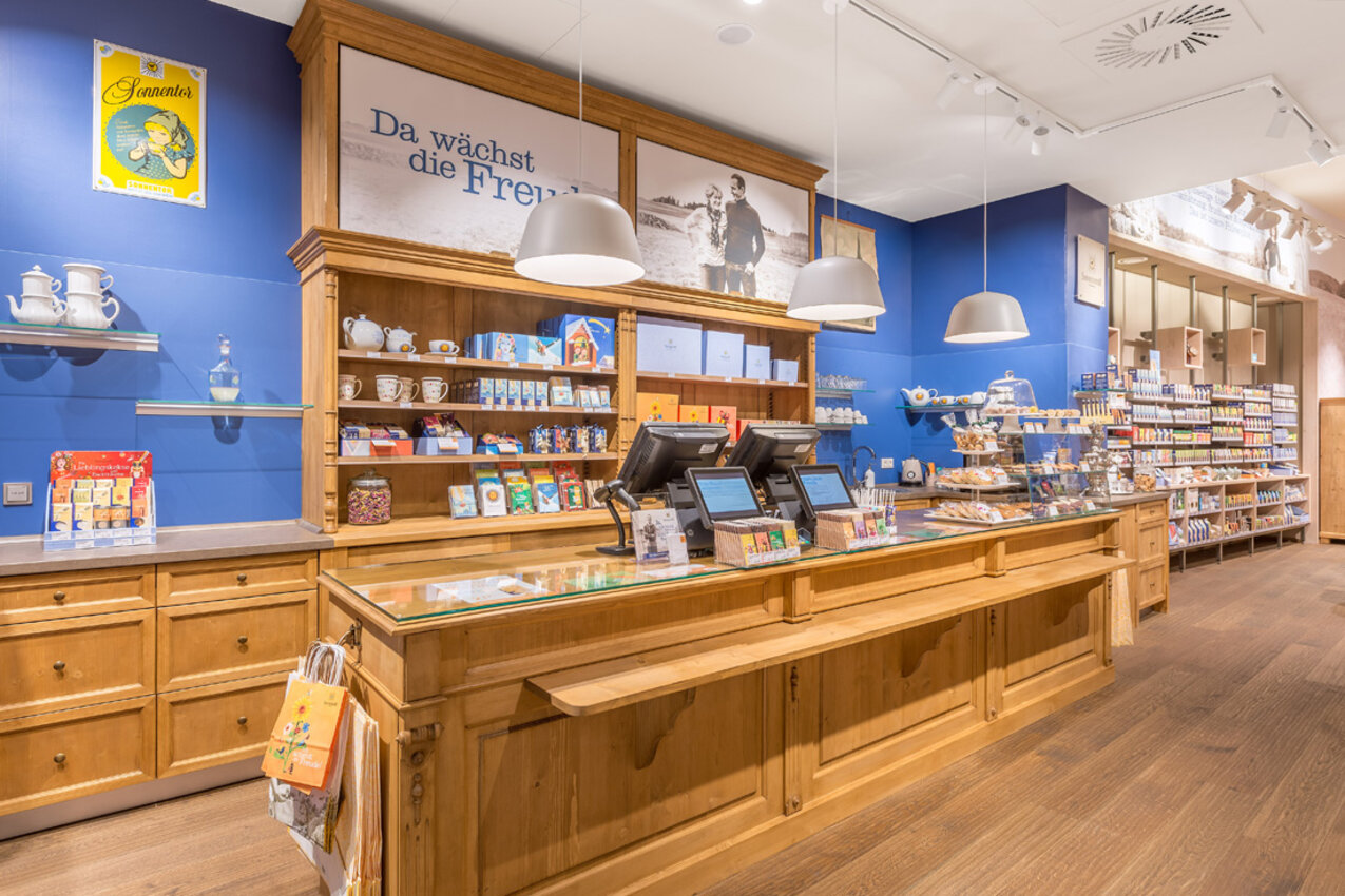 In dem entzückenden Geschäftslokal, wo modernes Design auf traditionelle Elemente trifft, findest du das komplette SONNENTOR Sortiment – von unseren biologischen Teespezialitäten über eine Vielzahl an Gewürzen bishin zu unserer Bio-Bengelchen Kinderlinie, Hildegardprodukten und kreativen Geschenkideen!