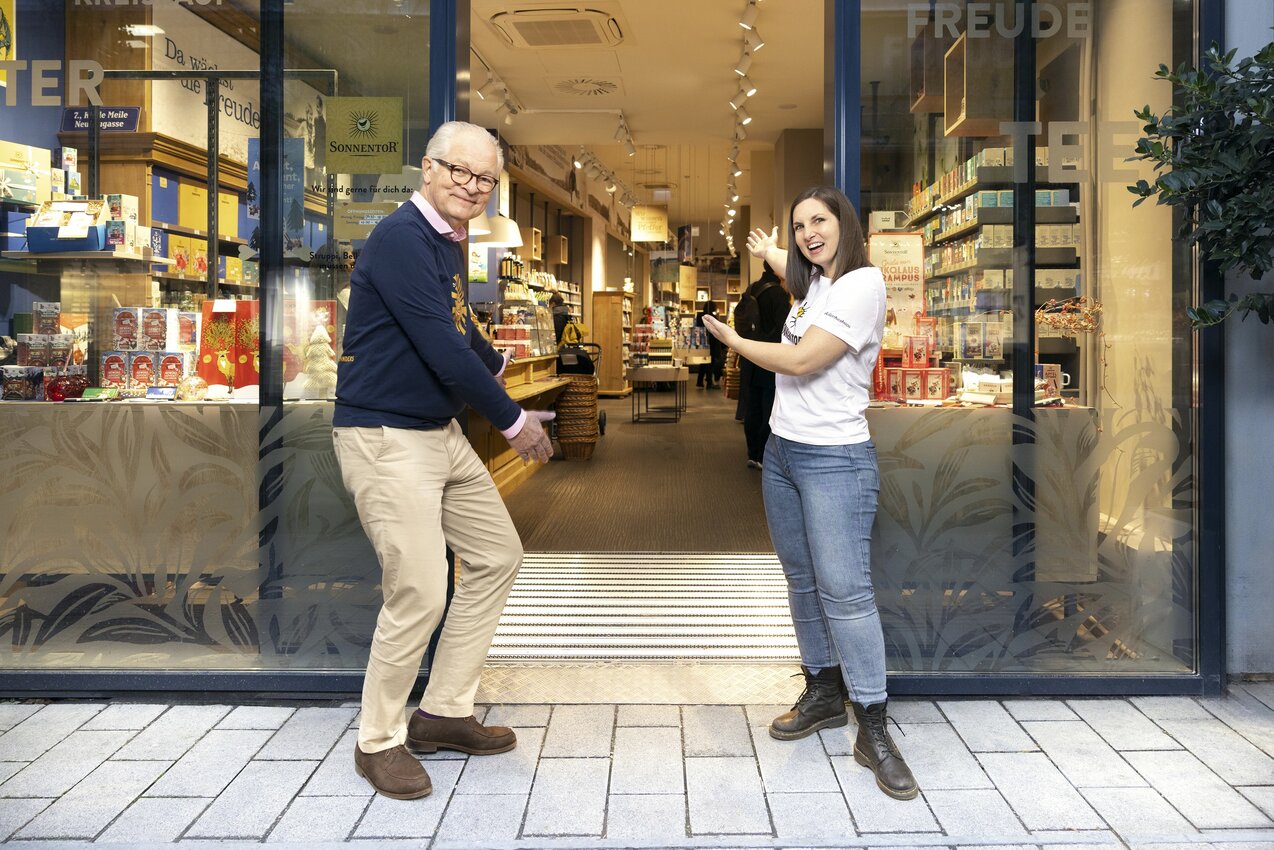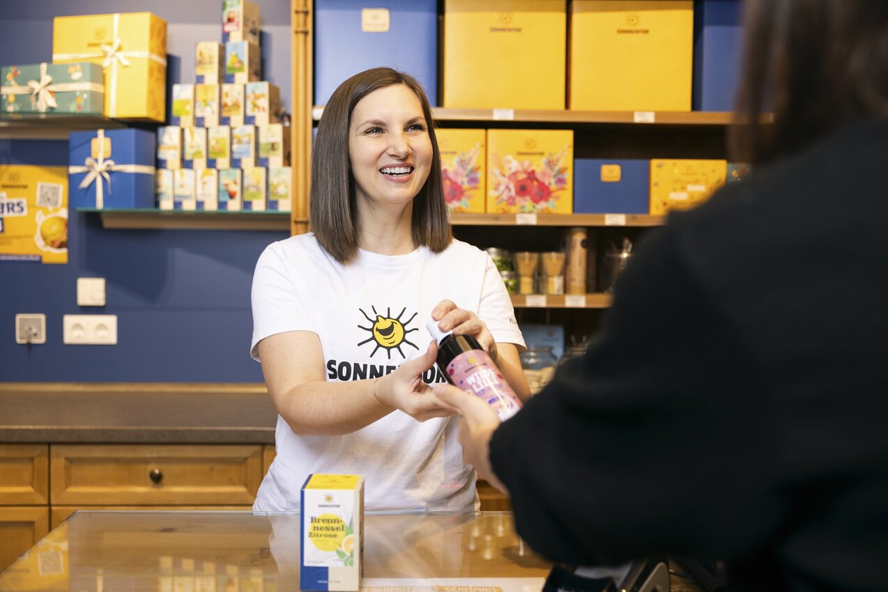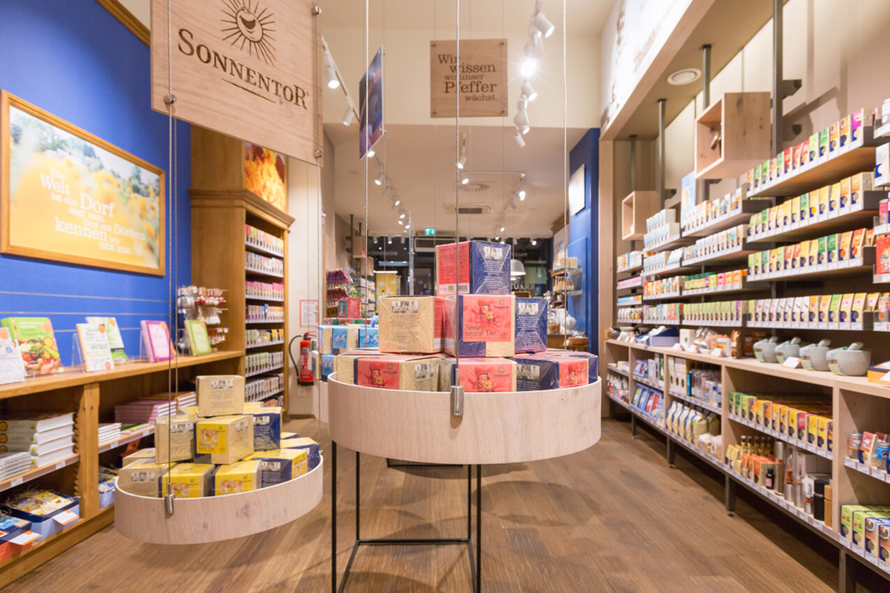 Wirf einen Blick in das SONNENTOR Geschäft - mit einem Klick ins Bild kannst du ganz einfach einen Rundgang machen: