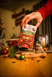 Tag für Tag ziehst du einen duftenden Tee aus dem Adventkalender. Und wenn du möchtest, kannst du dir die Wartezeit aufs Christkind noch mit digitalen Spielereien verkürzen! Neben dem Tee-Genuss begleiten dich jetzt auch noch 24 witzige, nützliche und geschmackvolle digitale Inhalte durch die Vorweihnachtszeit. Scanne einfach mit der Kamera deines Smartphones den QR-Code auf der Teebeutelhülle und entdecke jeden Tag eine neue Überraschung. Rezepte, Bastelanleitungen und vieles mehr bringen dich Weihnachten jeden Tag einen Schritt näher. Übrigens: Ein ganz analoges Suchspiel haben wir auch noch versteckt. Wer findet alle Zahlen von 1 bis 24?