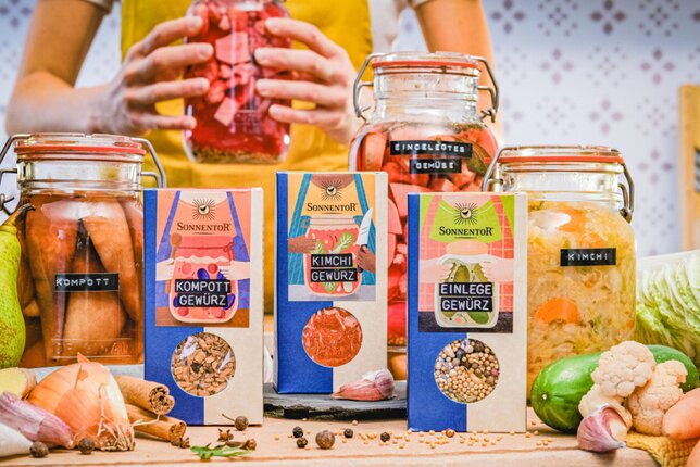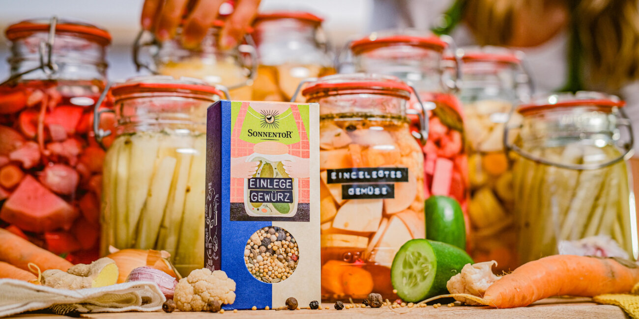 So einfach wie vielfältig sind die unterschiedlichen Techniken des Einlegens, dank derer du Obst und Gemüse aus dem Garten den ganzen Winter hindurch genießen kannst. Mit unseren neuen Gewürzmischungen bist du bestens ausgestattet, um einerseits ganz klassisch Gemüse in einen Essigsud einzulegen, milchsauer vergorene Fermente herzustellen oder um Obst zu Kompott oder Mus zu verarbeiten.