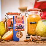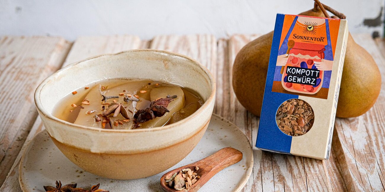 Der Geschmack von Sommerferien bei Oma: Birnenkompott und Hollerkoch! Mit dieser Gewürzmischung verfeinerst du Desserts oder konservierst fruchtige Erinnerungen an warme Tage im Handumdrehen. Wenn es draußen stürmt und schneit, zauberst du einfach ein Glas voll Sommer hervor. Unser Kompott-Gewürz ziert jede Frucht von Apfel bis Zwetschke. Grüß Gott, Frau Kompott!