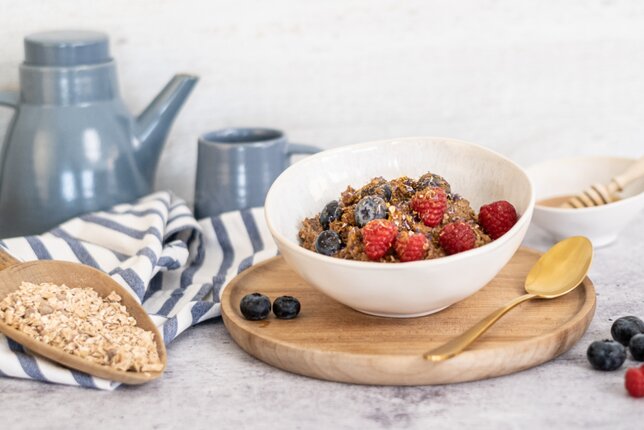 Im Herbst ganz weit oben auf unserem Speiseplan: warmes Frühstück. Porridge geht schnell und lässt sich schon am Vorabend gut vorbereiten. Abwechslung in den Einheitsbrei bringst du mit Gewürzen. Sams Porridge Gewürz mit Zimt, Muskat und Orange peppt dein Frühstück blitzschnell auf. Neben Porridge verfeinert es auch Joghurt, Früchte, Desserts und Milchschaum. So bleibt noch genug Zeit für eine entspannte Tasse Tee.