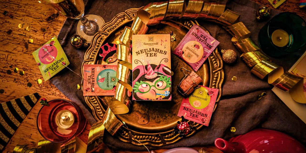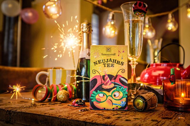 Genug von Schweinchen, Rauchfangkehrer und Co? Mit dem Neujahrstee bringst du statt Plastikfiguren nachhaltige Glücksmomente zur Silvesterparty. Neue inspirierende Sprüche, lustige Motive und ein Feuerwerk an Aromen in jedem Teebeutelchen lassen dich und deine Liebsten restlos glücklich ins neue Jahr rutschen. Prosit!