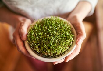 Das einzige, das deine Sprossen aus gutem Hause brauchen, ist die richtige Erziehung. Manche beispielsweise mögen Licht, andere nicht so sehr. Gezogen werden die Sprossen entweder im Keimigel oder im Sprossenglas. Welches Gefäß sich eignet, hängt von der Sorte und ihren Bedürfnissen ab. So oder so gelingt das Ziehen jedenfalls praktisch ohne jeden Aufwand.