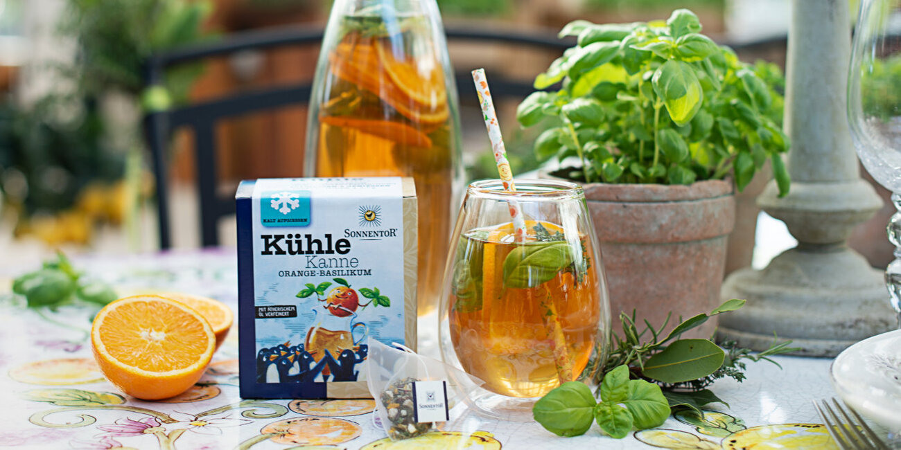 Das frische Duo haut selbst den stärksten Pinguin von der Eisscholle. Der fruchtige Geschmack der Orange harmoniert hervorragend mit der angenehmen Würze von Basilikum. Durch ätherisches Orangenöl wird's besonders intensiv. Für eine exotische Note sorgen Mango und Tulsi Basilikum. Pur genießen oder mit frischen Früchten und Kräutern aufregende Mischungen kreieren. Erfrischung garantiert!