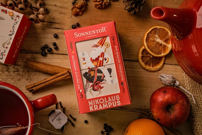 Dank der besonders gestalteten Karton-Verpackung lassen sich Nikolaus- und Krampus-Tee übrigens auch wunderbar teilen oder als kleine Aufmerksamkeit auch getrennt verschenken.