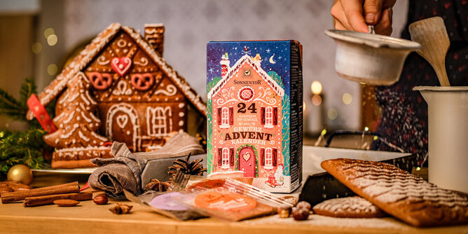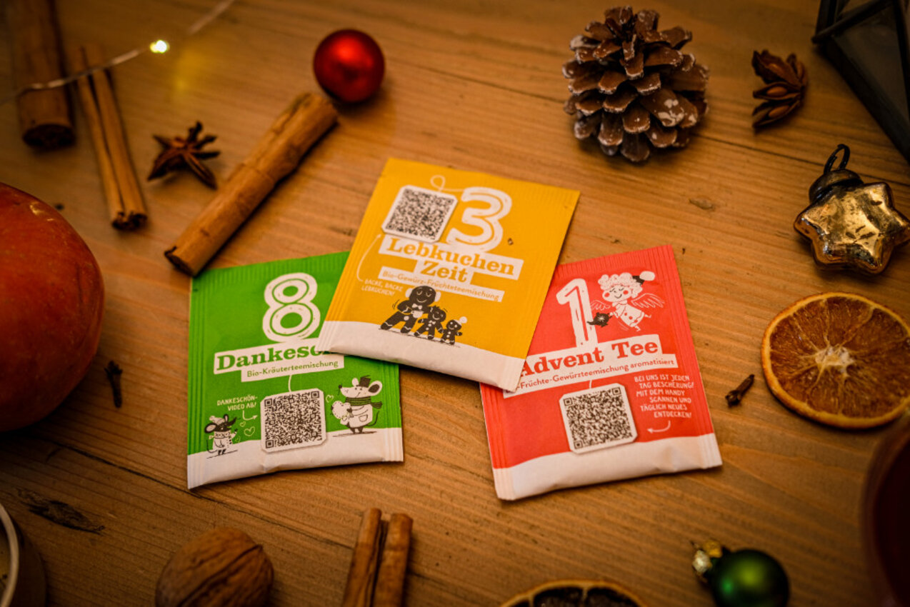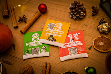 Nach dem Motto "Vorfreude zum Aufgießen" begleitet der Tee Adventkalender seit 2002 Groß & Klein stimmungsvoll durch die Vorweihnachtszeit. Er hat sich dieses Jahr ganz besonders herausgeputzt. 24 Teebeutel laden dich ein, dich durch das vielfältige SONNENTOR Sortiment zu kosten. Neben dem Tee-Genuss begleiten dich jetzt aber auch noch 24 witzige, nützliche und geschmackvolle digitale Inhalte durch die Vorweihnachtszeit. Scanne einfach mit der Kamera deines Smartphones den QR-Code auf der Teebeutelhülle und entdecke jeden Tag eine neue Überraschung.
