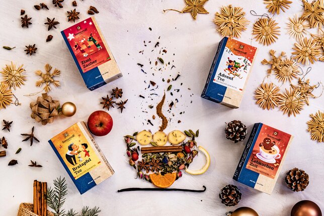 Genau die richtige Zeit, um unsere feinen, weihnachtlichen Tees zu genießen. Zimt, Nelken, Kardamom und Co lassen wunderbar festliche Düfte durch die Zimmer schweben und machen mit ihren würzigen Inhaltsstoffen kalten Füßen lange Beine. Sie sind genau das richtige Geschenk, wenn es zu Weihnachten richtig kalt wird.