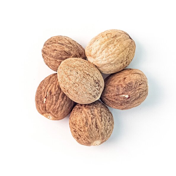 Muskatnuss ist reich an ätherischen Ölen. „Löcher“ oder Gänge in der Nuss entstehen, wenn sich das ätherische Öl verflüchtigt. Dies ist ein natürlicher Vorgang und kommt bei sehr vielen Muskatnüssen vor.
