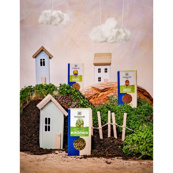 Einweichzeit: 6-8 Stunden, Keimdauer: Mind. 6 Tage, Verzehr ab 7. Tag, 2 x Am Tag spülen