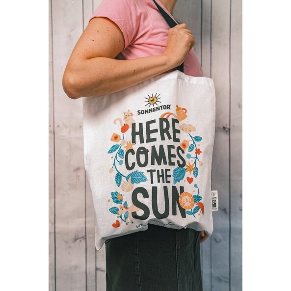Stofftragtasche "Here comes the sun" mit langen Henkeln