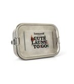 - eine Edelstahl-Thermosflasche Gute Laune, um Tee und Kaffee warm oder kalt zu halten.