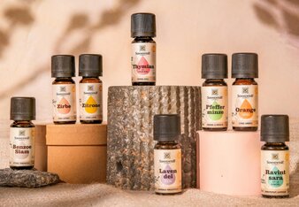 Auch wir können uns die Wirkung der Öle zu Nutze machen. Der richtige Duft hält lästige Plagegeister fern, sorgt dafür, dass unsere Mitmenschen uns gut riechen können und löst Empfindungen, Emotionen und Erinnerungen aus. Ätherische Öle können aber auch über die Haut aufgenommen werden – in Form von Körperölen, Salben, Bädern oder in der Sauna.