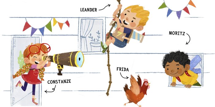 Leander ist immer auf der Suche nach einem spannenden Abenteuer. An seinen blauen Flecken, den zerrissenen Hosen und seinem schelmischen Lächeln erkennst du ihn schon von Weitem.