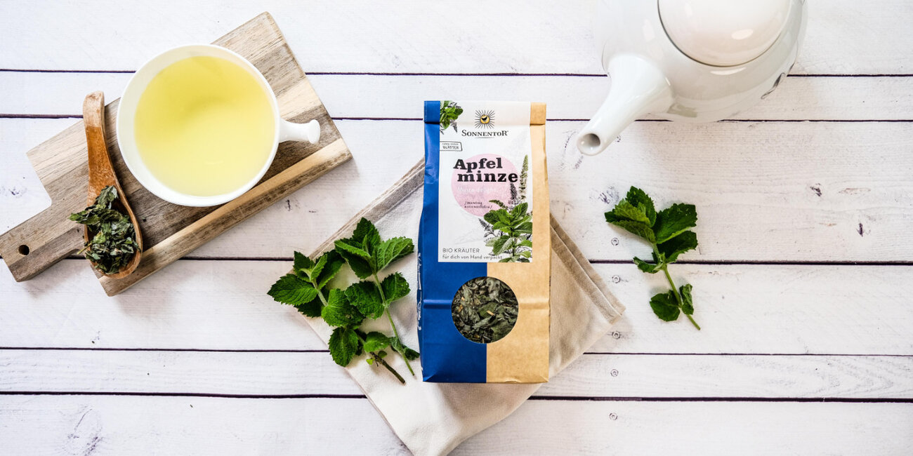 Tee aus Apfelminze passt sehr gut in die kalte Jahreszeit – aber nicht nur! Im Sommer schmeckt die milde Minze am besten eiskalt getrunken. Außerdem lässt sich mit dem Aufguss ein erfrischendes Sorbet herstellen.