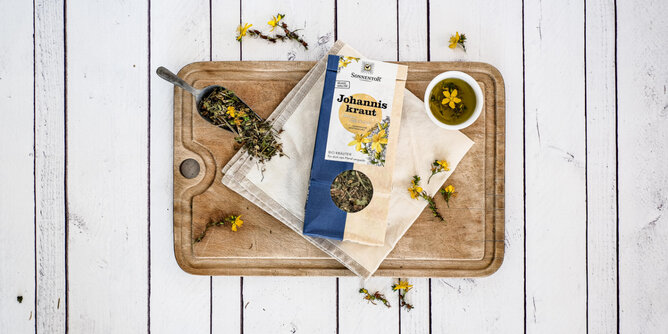 Oftmals als Unkraut verkannt, wird Johanniskraut von Kräuterexpert:innen auch gezielt kultiviert. Schon Hildegard von Bingen nannte das Echte Johanniskraut die Arnika der Nerven. Welch passender Spitzname - bringt es doch wärmende Sonnenstrahlen in depressive Gemüter. Besonders wohltuend ist Johanniskraut daher an grauen Wintertagen.