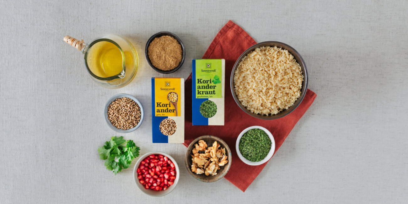 Vermutlich liegt sein Ursprung in Algerien, im Sinai, Libanon, in Jordanien, Bulgarien und Kroatien. Als Wildpflanze gibt es ihn nicht. Verwildert findet man ihn dagegen ab und zu. Die Pflanze wird seit etwa 5000 vor Christus genutzt. In Nordeuropa hat sich Koriander im Mittelalter verbreitet. Heute wird er fast weltweit angebaut. SONNENTOR bezieht das Gewürz ausschließlich von Anbaupartner:innen aus Österreich. Verwendung finden die Blätter sowie die kleinen braunen Früchte des Doldenblütlers.