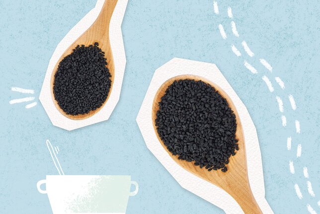 Schwarzkümmel kann man sowohl als Samen als auch als Schwarzkümmelöl genießen. Das Öl eignet sich hervorragend zum Würzen von Salaten und Bowls und kann auch pur eingenommen werden.