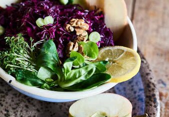 Herrlich frischer Salat mit Kräutern und Pinienkernen.