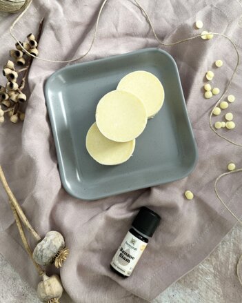 Nimm die Masse vom Herd und gib in die etwas abgekühlte Masse als Letztes das ätherische Öl deiner Wahl.