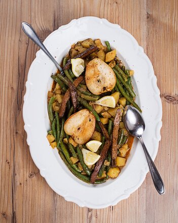 Kurz bevor die Kartoffeln weich sind, Fisolen beigeben und noch einmal aufkochen. Mit Smokey Salt abschmecken.