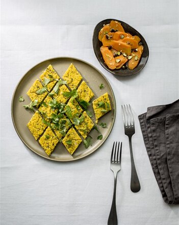 Frauenkräuter-Polentaschnitten mit Ingwer-Karotten