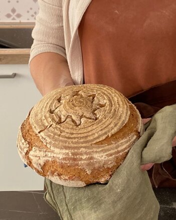 Die aufgegangenen Laibe aus den Simperln direkt aufs heiße Blech stürzen und in den Ofen schieben. („einschießen”). Mittels Sprühflasche oder Dampffunktion schwaden. Den Dampf nach 5 Minuten ablassen und die Temperatur auf 200 °C reduzieren. Weitere 45 Minuten fertigbacken, bis das Brot eine Kerntemperatur von 95-97 °C erreicht hat.