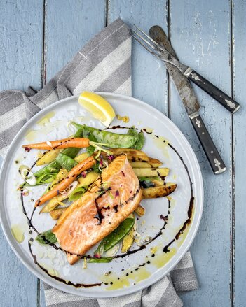 Ein herzhafstes Lachsfilet mit Gemüse! Verfeinert wird das Gericht mit Svens Fischgewürz!