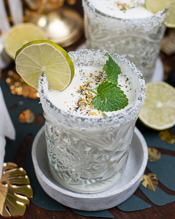 Ein erfrischender alkoholfreier Cocktail mit Kokosflocken, Joghurt und Limettensaft.