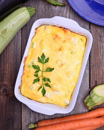 Eine Auflaufform mit Butter ausstreichen und lagenweise Nudelblätter mit der Gemüsesauce und Bechamelsauce auffüllen. Zum Schluss mit Käse bestreuen und im Backrohr ca. 45 Minuten bei 160°C backen.