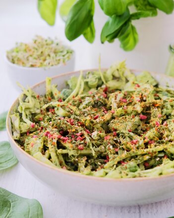 Ein leichter Salat für den Frühling mit einem köstlichen Dressing und dem Salattopping als Highlight.