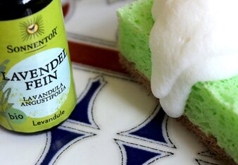 Apfelessig und ätherische Öle dazugeben, leicht schütteln und Flasche verschließen.