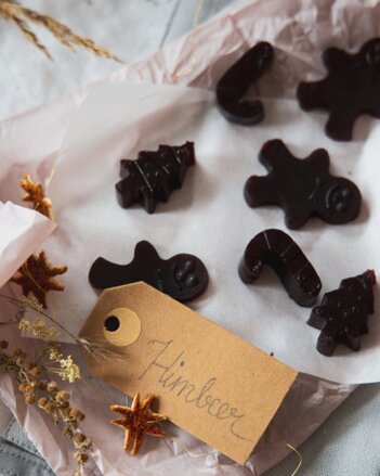 Die Fruchtgelees in einer Keksdose oder einem Glasgefäß mit Deckel zwischen Schichten von Butterbrot- oder Backpapier im Kühlschrank aufbewahren.