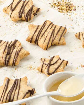 Alle Zutaten bis auf die Schokolade zu einem glatten Teig kneten. Unser cremiger Sonnige Grüße Honig und Omas wonne-weihnachtliches Kuchen- und Keks Gewürz lassen deine selbstgemachten Honig Mandel Sterne zu einem himmlischen Genuss werden. Da will man am liebsten schon den Teig vernaschen, stimmt’s?
