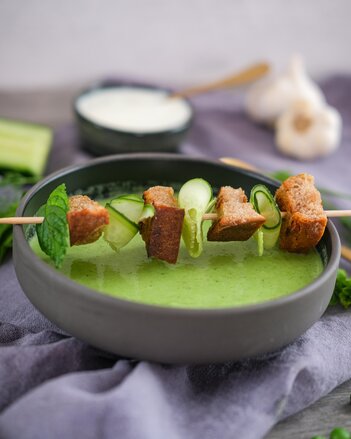Tipp: Auch Knoblauchbrot passt perfekt zu der erfrischenden, kalten Suppe.