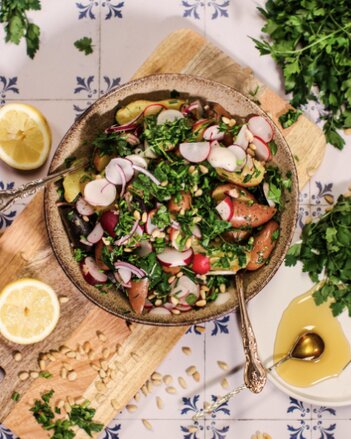 Kartoffel-Radieschen-Salat mit Kräutern & Pinienkernen