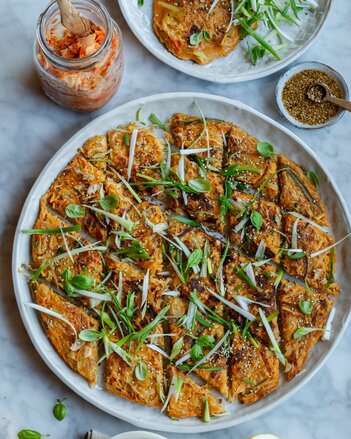 Pancakes mal anders - würzig und in Kombination mit Kimchi, verfeinert mit Sesamdip