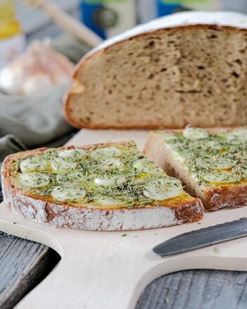 Brot mit Knoblauch, Manuka-Honig, Rosmarin und Thymian. Ein wahrer Immunbooster.