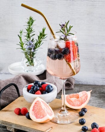 Beeren in einem Glas zerdrücken, Eiswürfel und 2 EL Wilde Lilli Sirup hinzufügen und mit Sprudelwasser aufgießen. Nach Belieben mit Rosmarin garnieren!