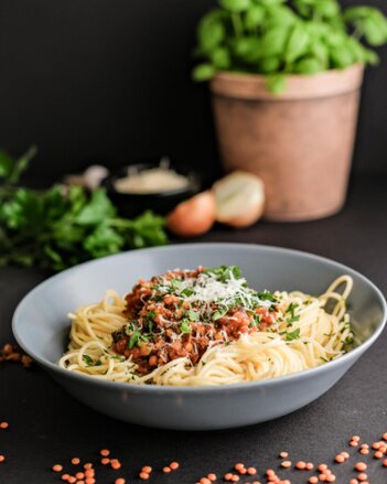 Heißt das jetzt Verzicht auf alles Tierische? In unseren Augen ist ein bewusster Konsum der Schlüssel. Bei SONNENTOR zeigen wir, wie’s geht: An zwei Tagen pro Woche kommt für unsere Mitarbeitenden nur Veggie und Vegan auf den Tisch – köstlich, kreativ, klimafreundlich. Wie wär’s zum Einstieg mit einer Linsenbolognese? Ohne tierische Produkte, aber voller Geschmack.
