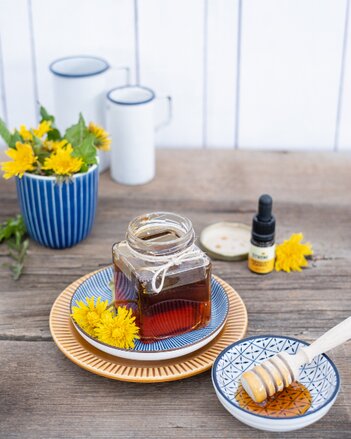 Ein süßer Honigersatz aus Löwenzahnblüten, verfeinert mit unserem ätherischen Gewürzöl Zitrone!