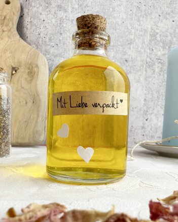 Fülle das Öl anschließend in ein verschließbares Gefäß ab.