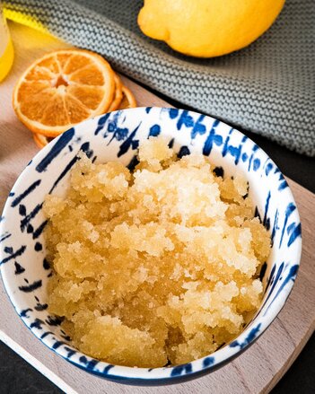 Anwendung: Die Haut mit der Mischung gut einreiben. Anschließend mit warmen Wasser abspülen.