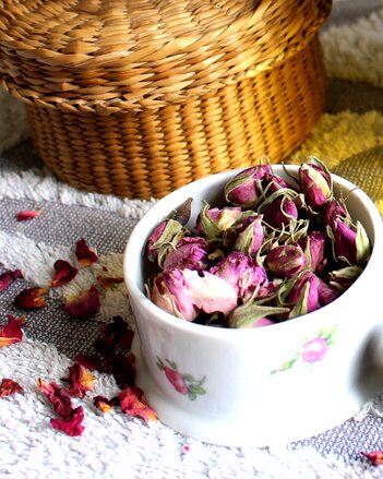 1. 1 Tasse Rosenhydrolat mit 1 Tasse (Hafer-)Milch, 3 Tropfen Rosenöl, 3 Tropfen Ylang Ylang Öl und 2 Tropfen Zedernholz Öl mischen und in das warme Wasser leeren.