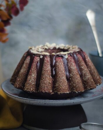 Saftige herbstliche Variation vom klassischen Gugelhupf mit Rote Rüben und Zartbitterschokolade.