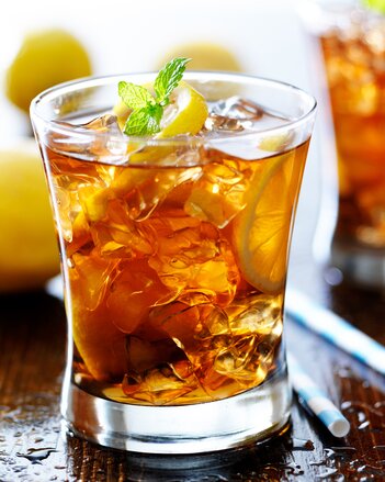 Den eisgekühlten Tee in ein Glas mit einem Minzezweig dekorieren – und genießen.