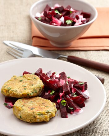 Linsenplätzchen auf indische Art in Kombination mit der roten Powerknolle - einfach köstlich.