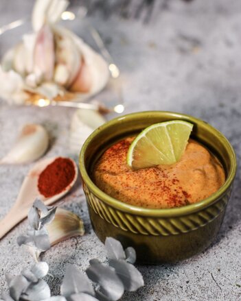 Eine Creme aus Öl, Knoblauch, Limettensaft und Smokey Paprika. Perfekt als Vorspeise oder Beilage.