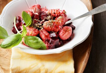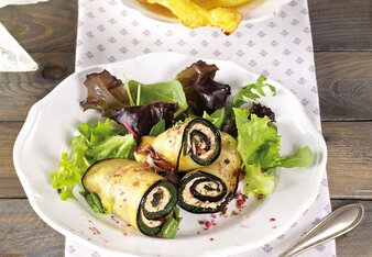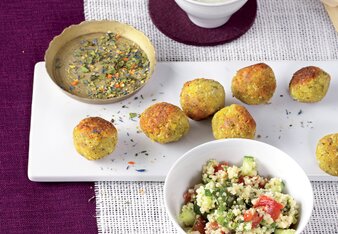 Gemüse waschen und in mundgerechte Stücke schneiden. Die Avocado halbieren, das Fruchtfleisch aus der Schale löffeln und in feine Scheiben schneiden.