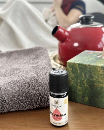 Vor allem in der kalten Jahreszeit wirkt ein Wickel mit dem ätherischem Thymian Öl wahre Wunder!